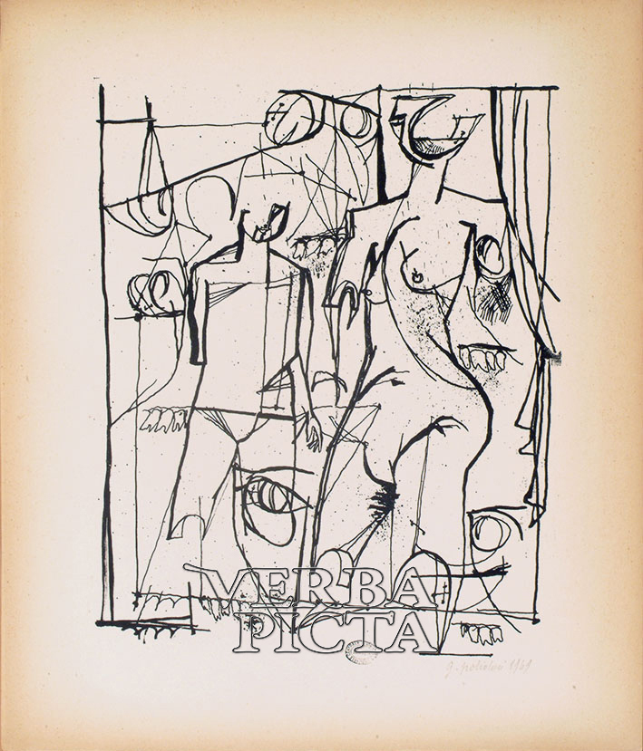 Prima stampa della / Scena V / dell’atto III / dalla / FEDRA / di Jean Racine / nella traduzione inedita di / Giuseppe Ungaretti / con 7 litografie originali di Enzo Del Prato e Gianni Polidori
